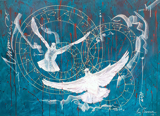 Veo el universo donde pertenecemos en un éxodo infinito a su acorde final.